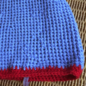 Har strikka dei i Suri. Eit nøste pr lue. La opp 74 masker på pinner nr 4.